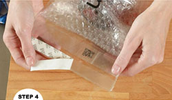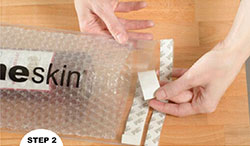 PEEL THE PROTECTIVE BACKING OFF THE SECOND ADHEASIVE STRIP COMPLETELY. |