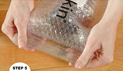 PUSH THE WINE BOTTLE ALL THE WAY INTO WINESKIN UNTIL IT FITS SNUGLY. |